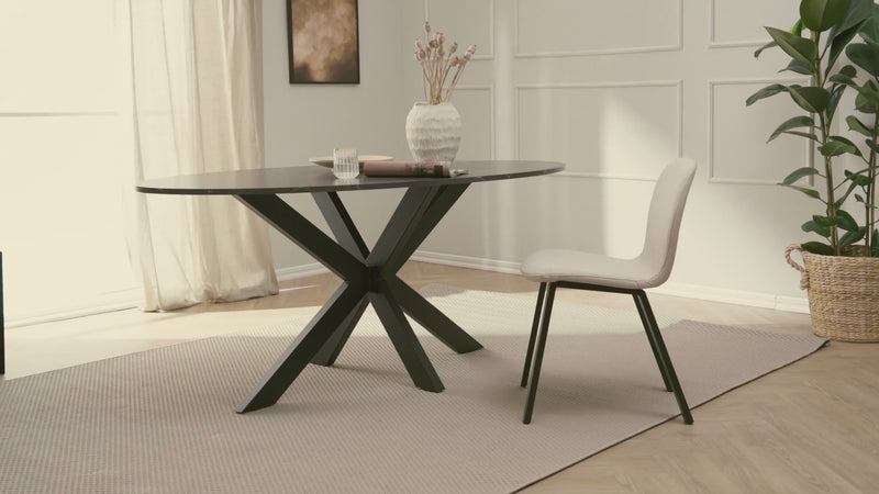 Die extravagante Form lädt zum Sitzen rund um den Tisch ein.